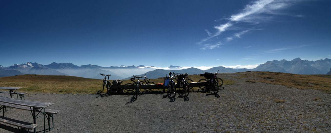 Panorama vor der Hütte mit MTB Foto: TVB Wipptal