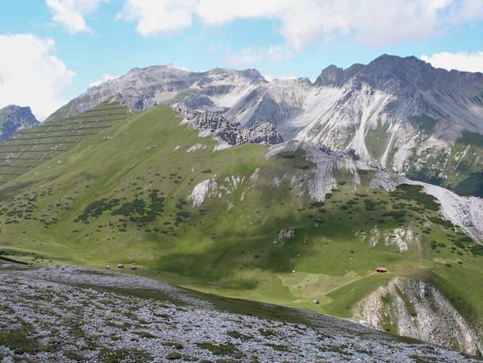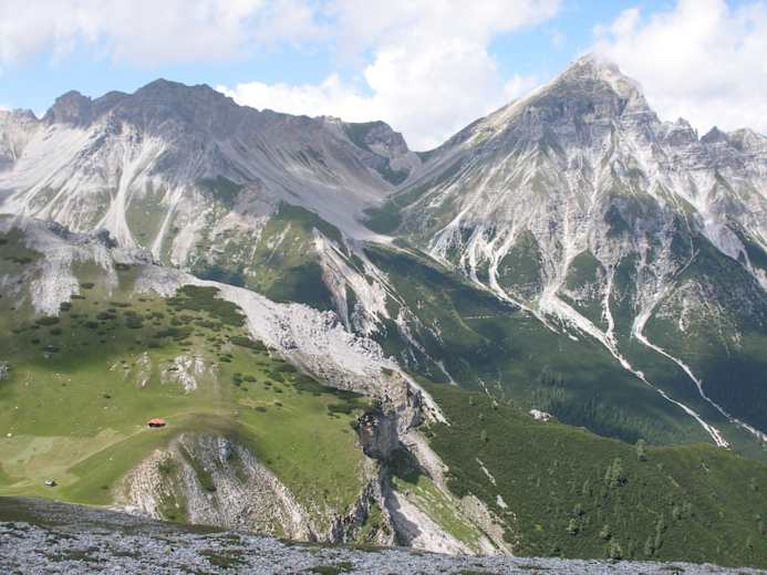 Blick vom Gipfel zur Hütte Blaser Foto: Martina Gstrein TVB Wipptal