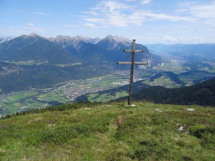Mittelschwere Wanderung in den Ausläufern der Stubaier Alpen in der Region Innsbruck in Tirol: Auf dieser Tour geht es hinauf auf den „Rauher Kopf“. Von dessen Gipfel hat man eine herrliche Aussicht auf das Inntal.