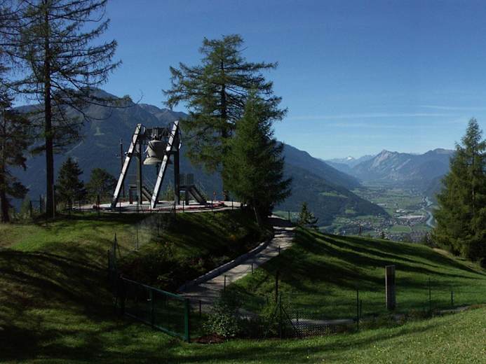 Mittelschwere Wanderung in der Region Innsbruck in Tirol: Auf dieser Tour geht es von Pettnau zur Friedensglocke in Mösern. Die Wanderung ist auch sehr gut für Familien geeignet.
