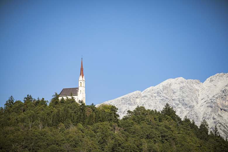 Mittelschwere Wanderung in den Ausläufern der Mieminger Kette in der Region Innsbruck in Tirol: Auf dieser Tour geht es zur berühmten Wallfahrtskirche Maria Locherboden. Dort angekommen, kann man das schöne Bauwerk in aller Ruhe bestaunen und auf sich wirken lassen.