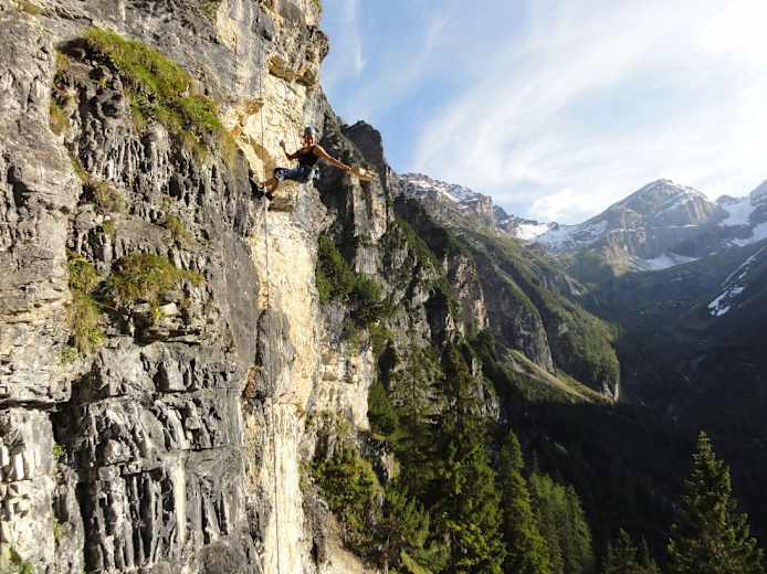 Der Klettergarten für Genießer bietet aktuell 18 Routen in alpinem Kalkgestein auf rund 1.675 m. Die Schwierigkeitsgrade sind zwischen 3 und 7, zumeist aber 5 und 6. Die Routen gliedern sich in vier verschiedene Sektoren in den Felswänden. Das Highlight sind die zwei Mehrseillängentouren "Urknall" (100 m) und "Made in Tirol" (70 m). Der Klettergarten ist nach West bzw. Südwest ausgerichtet.