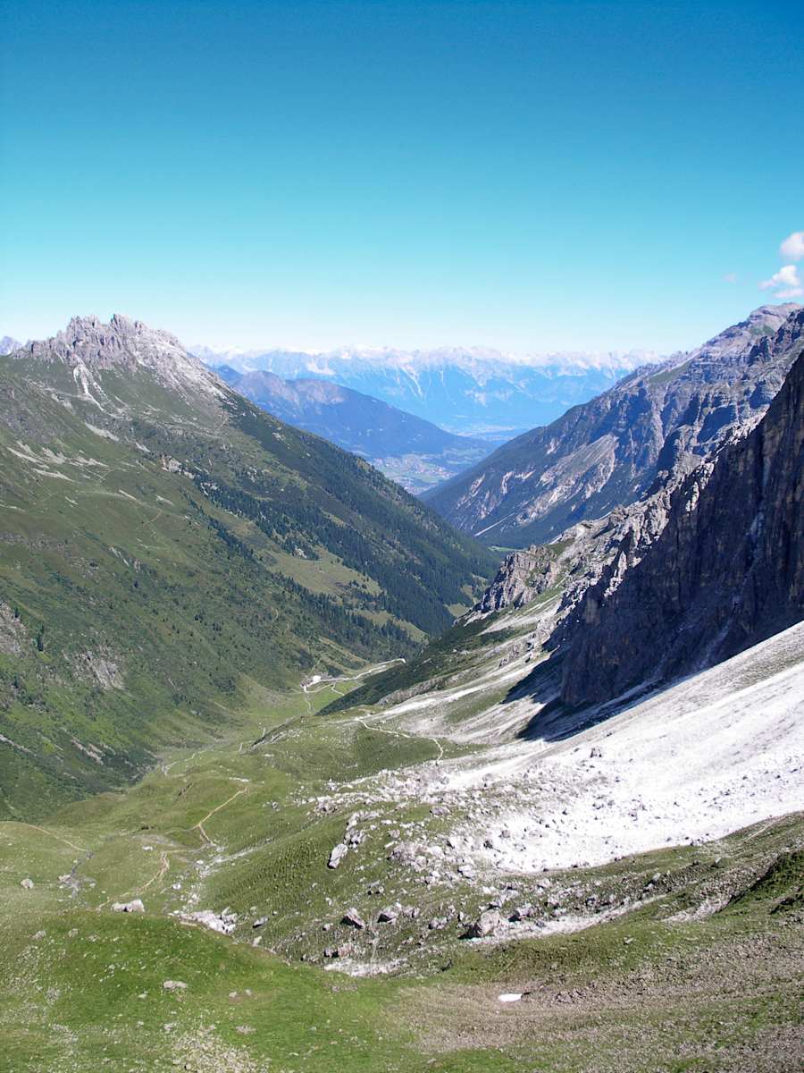 Bei der Innsbrucker Hütte angekommen, fühlt man sich fast wie in den Dolomiten: Umzingelt von markanten Felswänden und Spitzen hat man eine schönen Ausblick auf die Bergwelt der Stubaier Alpen, des Karwendels, der Tuxer Alpen und der Dolomiten. Die Hütte steht auf dem Pinnisjoch, dem Übergang zwischen Gschnitztal und Stubaital.