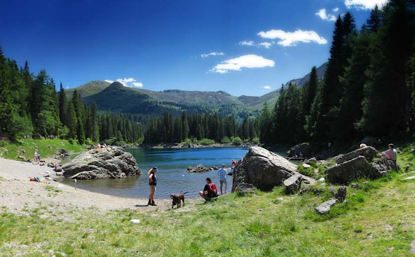 Der wunderschöne Obernberger See in der Tiroler Tourismusregion Wipptal ist mit seinem grünblauen kristallklaren Wasser ein unglaublicher Anblick. Der Bergsee liegt in einem Kessel in den Stubaier Alpen - rechts ragt majestätisch der Obernberger Tribulaun empor und links befindet sich die Allerleigrubenspitze. Am hintersten Ende des Sees liegt das Portjoch, das die Grenze zu Italien darstellt. Der Weg führt vom Parkplatz auf einem Forstweg zum See und verläuft rundherum. Die Wanderung ist ideal für einen Ausflug mit großen und kleinen Kindern.