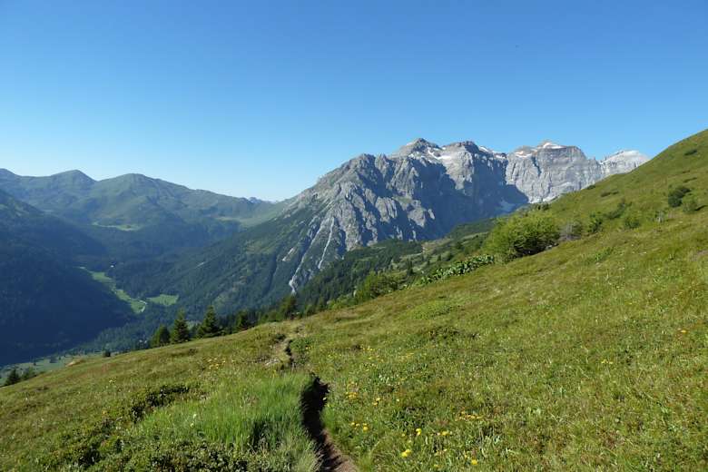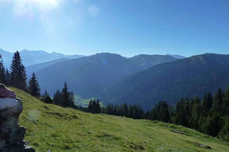 Abstieg wie Aufstieg oder Variante über den Weg Nr. 125, der recht steil bergab ins Tal bis zu Almi’s Berghotel führt.
