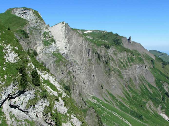 Über dem Mellental. Nach den beschwerlichen Tagen im Lechquellengebirge ist diese Wanderung in Vorarlberg im Bregenzerwaldgebirge ein aktiver Regenerationstag mit wunderbaren Tiefblicken.