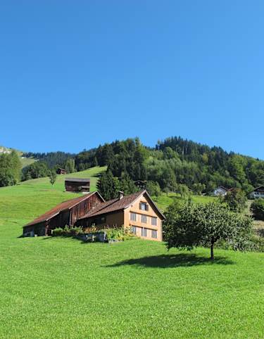 Der kurze Anstieg zur Weissenfluhalpe ist allerdings nicht der Letzte an diesem Tag. Es geht beständig Auf und Ab - zunächst zur Bregenzer Hütte, dann etwas weiter zur Lustenauer Hütte und vorbei an der Hämmerle’s Alpe. Überall laden Tische und Wirte zu einer kurzen Rast ein. Die letzten Kilometer führen schattig und eher flach zum Losenpass (1.140 m), gemeinhin als Bödele bekannt. Im Berghof Fetz beziehen wir unser Zimmer und freuen uns auf ein herzhaftes Abendessen.