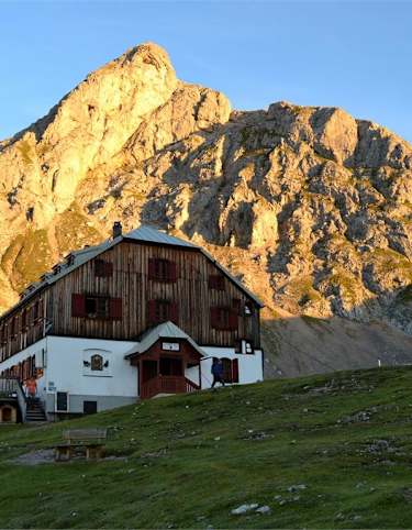 Der 3. Teil dieser mehrtägigen Höhenwanderung ist wieder etwas länger als die 2. Etappe, und hält einige Höhepunkte bereit. Insgesamt benötigt man eine Gehzeit von ca. 6 Stunden. Über einen Karrenweg wandert man auf dem Weg Nr. 702 zunächst Richtung Osten. Nach wenigen Minuten erreicht man an einer Almhütte ein Wegkreuz wo man dem Weg Nr. 702 weiter in Richtung Trockenbrotscharte folgt.