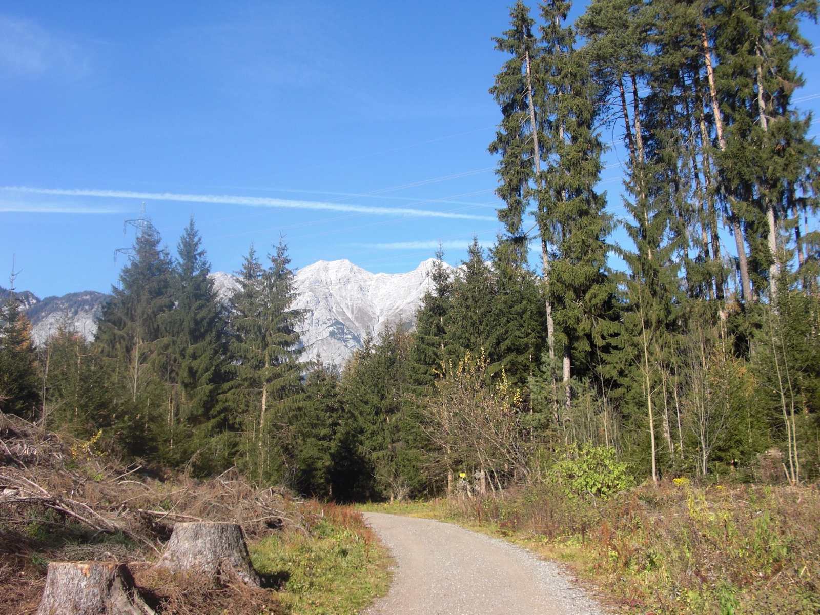 Auf dem Höllboden-Rundwanderweg marschiert man hauptsächlich durch den Wald rund um Götzens ob Innsbruck. Lohnende Tour in den Stubaier Alpen in Tirol.