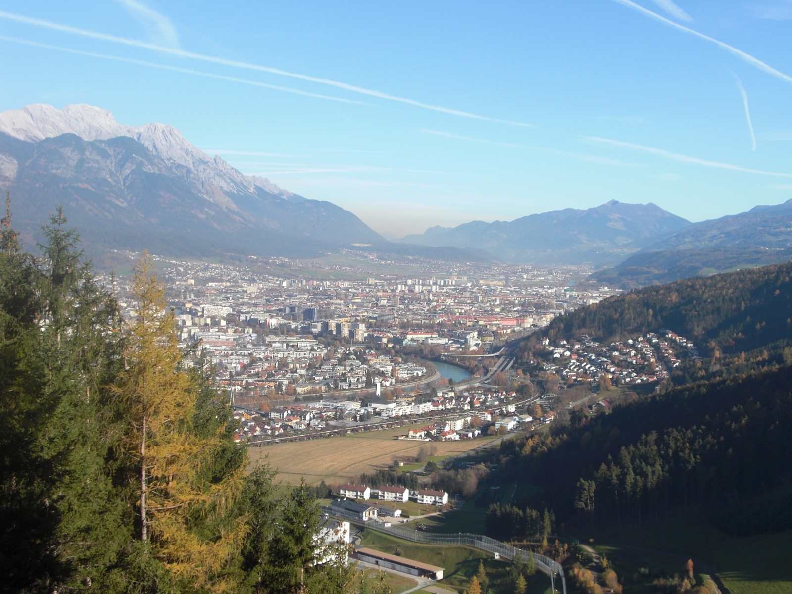 Unterwegs hat man einen wunderbaren Ausblick auf Innsbruck, das Karwendel und die umliegenden Stubaier Alpen.