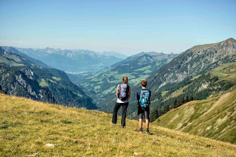Die Route führt von Damüls Richtung Faschina über die Bartholomäusalpe. Weiter zur Zafernalpe entlang der Hochschere über die Obere Ischkarneialpe bis hin zum Ziel, der Biberacher Hütte.