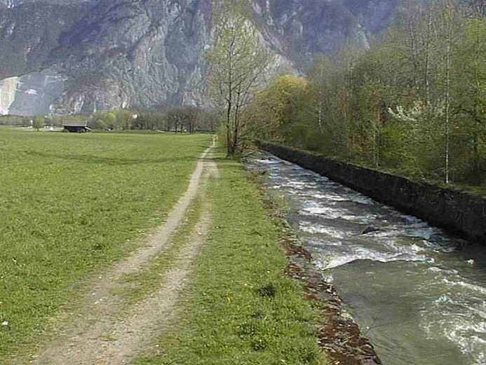Vom Ausgangspunkt im Zentrum von Kematen marschiert man durch die Zwölfergasse und am Mühlbachweg in Richtung Seniorenheim. An der Melach entlang geht es weiter flussabwärts, bis man eine Holzbrücke erreicht.