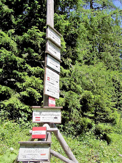 Vom Parkplatz führt ein bezeichneter Forstweg leicht linkshaltend und kaum ansteigend in wenigen Minuten bis zum nahen Almgasthaus in der Jassing. Achtung: nicht rechts aufwärts über die Russenstrasse gehen, diese führt zur Sonnschienalm.