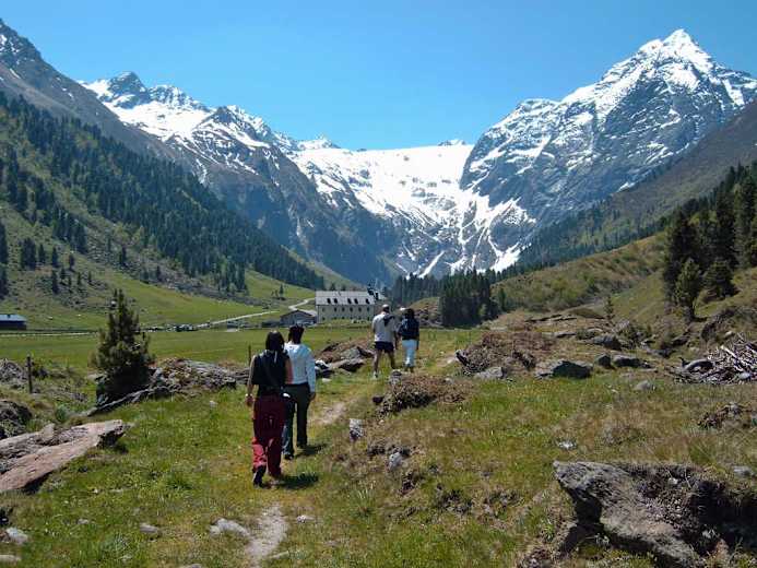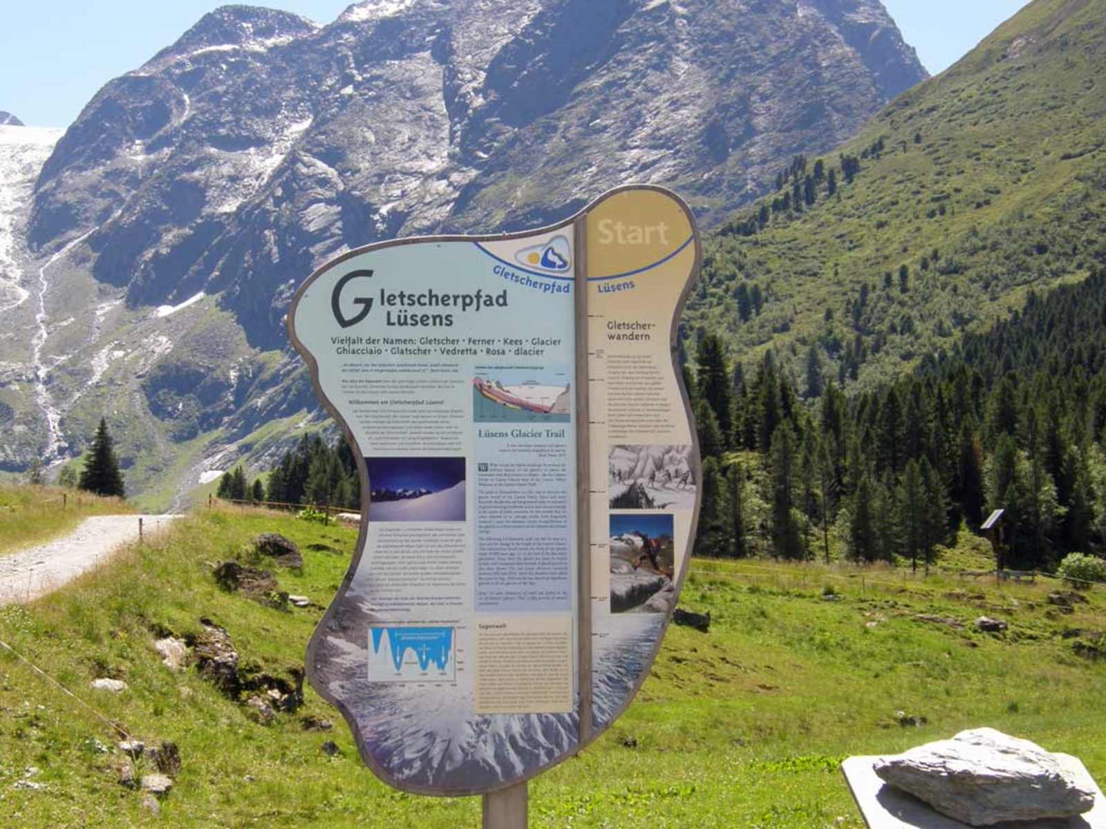 Vom Ausgangspunkt in Praxmar marschiert man vorbei an einigen Info-Tafeln bis Lüsens. Weiter geht es zum Fernerboden, dem Ziel dieser Wanderung.