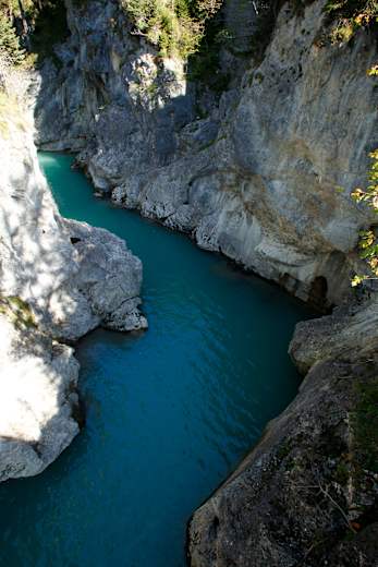 In Bad Faulenbach folgen wir dem Fischhausweg mit den Parkplätzen bis zu ihrem Ende am bewaldeten Berghang, halten uns dort links Richtung „Lechfall, Maxsteg“ und gehen durch ein Wohngebiet. Anschließend biegen wir rechts in ein bergauf führendes Sträßchen ein und wandern am höchsten Punkt links hinunter zum Lech und über den Maxsteg, von dem aus wir in die felsige Klamm und auf den Lechfall blicken. Mit Getöse stürzt dort das aufgewühlte Wasser über fünf künstlich angelegte Stufen insgesamt zwölf Meter hinab.