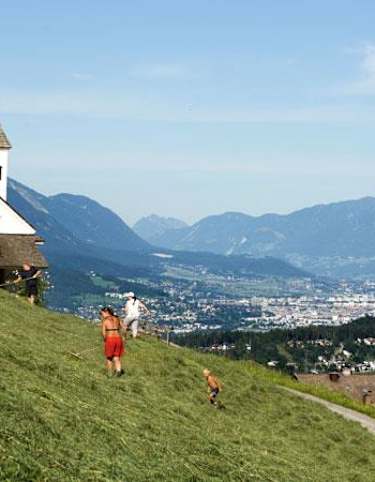 Hoch über dem oberen Inntal in Tirol und am Fuße des Narrenkopfes in den Stubaier Alpen liegt die urige Pfaffenhofer Alm. Von dort führt höhengleich der Bettlersteig zur Oberhofer Melkalm, auf dem man mit lustigen Sprüchen unterhalten wird. Der Panoramablick auf Karwendel und über das Inntal ist von der Oberhofer Melkalm atemberaubend.