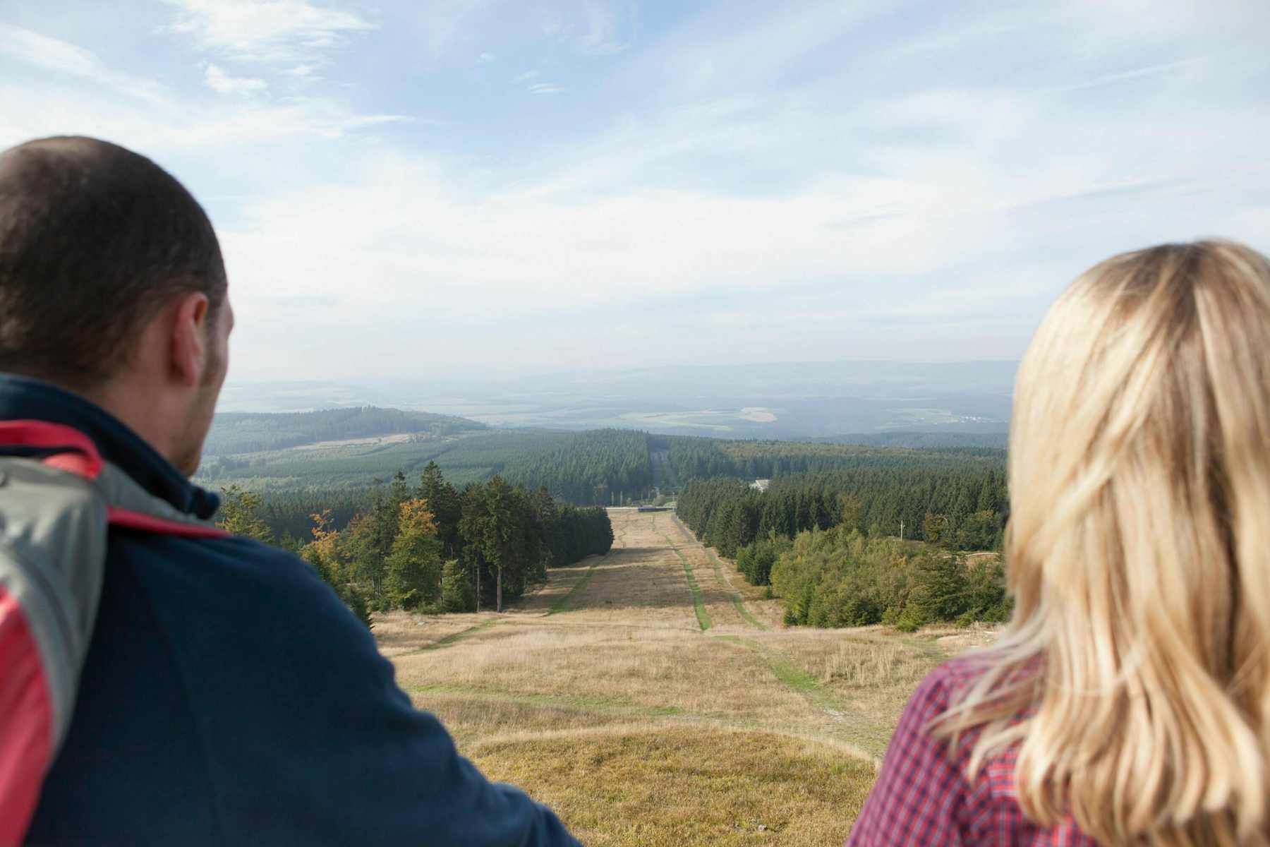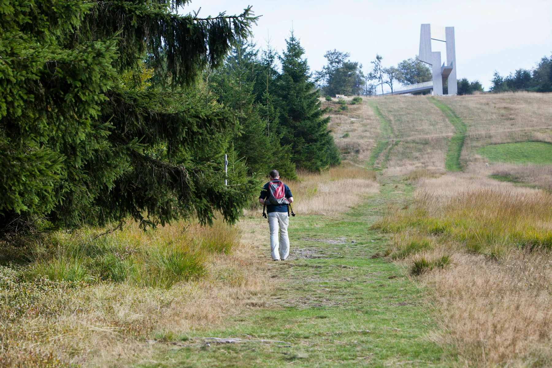 Gleich am Anfang der Tour ist der Erbeskopf erreicht. Weiter geht es zur Siegfriedquelle und dem Thranenweiher.
