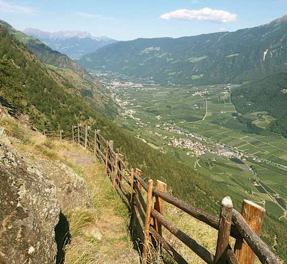 Der Vinschger Höhenweg, von Staben im Untervinschgau bis zur Etschquelle am Reschenpass, vereint verschiedene Etappen zu einem reizvollen Erlebnismarsch. Die mehr als 100 Kilometer lange Strecke verläuft auf Wanderwegen, Waalwegen (alte Bewässerungspfade) oder Verbindungswegen zwischen Bauernhöfen. Am Vinschger Höhenweg wandert man durch eine artenreiche Vegetation und eine Natur, die gegensätzlicher nicht sein könnte und bietet spektakuläre Aussichten auf die höchsten Berge Südtirols und in das fruchtbare Tal.