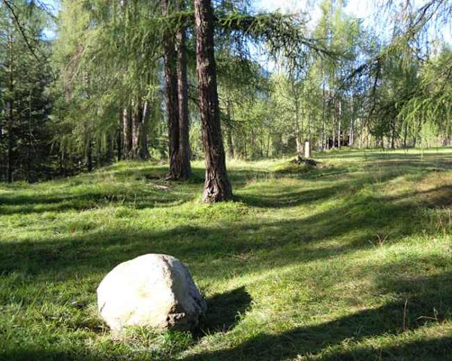 Auf der Lärchenwiese kann man den historischen Herdstein in Augenschein nehmen. Gleich daneben liegen Findlinge, die aus der letzten Eiszeit stammen, sowie ein großer „Kreisstein“ , dessen Bedeutung ungeklärt ist.