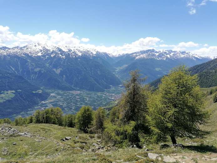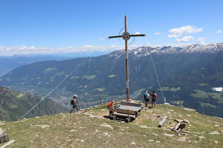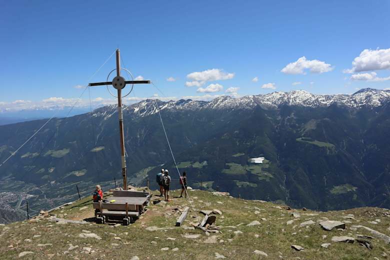 Diesen schönen Aussichtsgipfel, dem Tscharser Wetterkreuz, oberhalb von Kastelbell und Tschars in den Ötztaler Alpen erreicht man über den Weiler Trums am Vinschger Sonnenberg. Die mittelschwierige Bergtour in Südtirol weist keine besonderen technischen Schwierigkeiten auf und kann auch mit kleinen Gipfelstürmern erwandert werden.