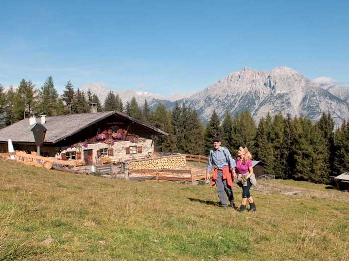 Die Melkalm hat von etwa Mitte Juni bis etwa Mitte Oktober geöffnet, liegt auf 1.694 m und bietet eine grandiose Aussicht über das Inntal, die Martinswand bis Innsbruck und Richtung Norden bis Seefeld. Es werden 'tiroltypische' Almgerichte wie Kas- oder Speckknödel mit leckerem Kraut serviert, die man sich hier fein auf der Zunge zergehen lassen kann.
