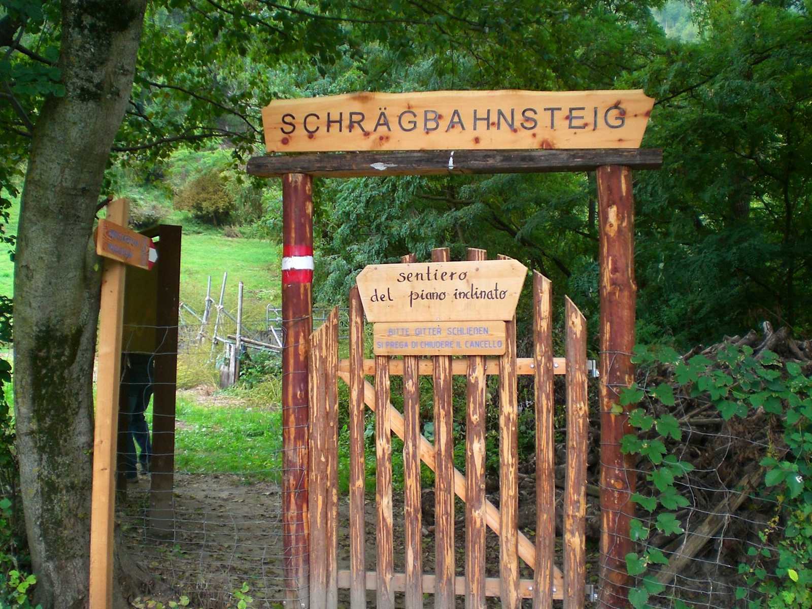 Der Schrägbahnsteig führt von der Talstation der Marmorschrägbahn in Serpentinen zur St. Martinskirche und hinauf zur Bergstation am Bremsberg. Von der Aussichtskanzel am „Wechsel“ der Ladebrücken hat man einen Ausblick auf Laas und den Vinschger Sonnenberg.