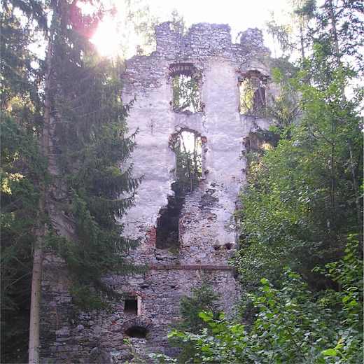 Auf dem Weg zurück nach Anger bietet sich dann noch abschließend ein schöner Ausblick auf die Ruine Waxenegg, eine alte Burg, deren Anfänge auf das 13. Jahrhundert zurückgehen.