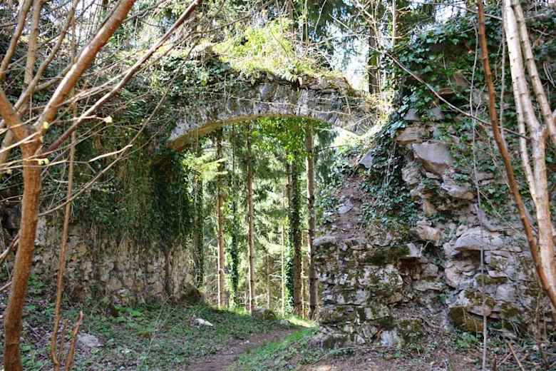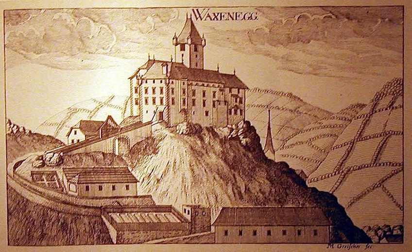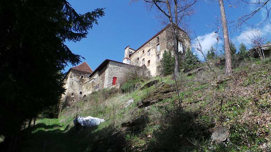 Auf dem Weg ins Tal hat man einen guten Blick auf die Ruine Waxenegg.