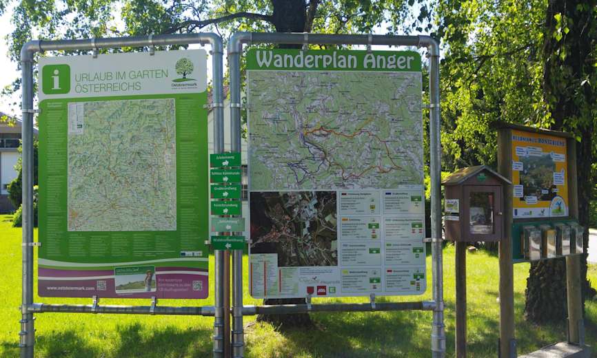 Etwas anspruchsvollere Wanderung im schönen oststeirischen Apfelland. Auf dieser Rundtour im Randgebirge östlich der Mur kommen sowohl kulturell interessierte Wanderer als auch Freunde kulinarischer Köstlichkeiten auf ihre Kosten. Ziel dieser Tour, die in Anger startet, ist das Rauchstubenhaus mit Heimatmuseum und dem Gasthof Almer in Edelschachen.