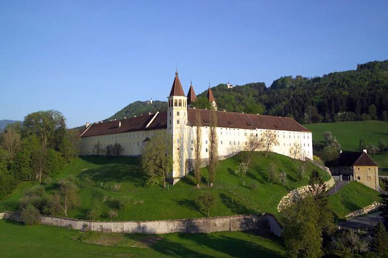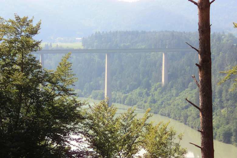Am Weg unter dem Wirtschaftsgebäude geht es nun in den Wald und am Lavanttaler Höhenweg aussichtsreich (Blick auf Neuhaus mit dem Museum Liaunig) bis zum Kasbauer (ein ehem. Gasthaus und Ausflugsziel der St. Pauler, heute privat).