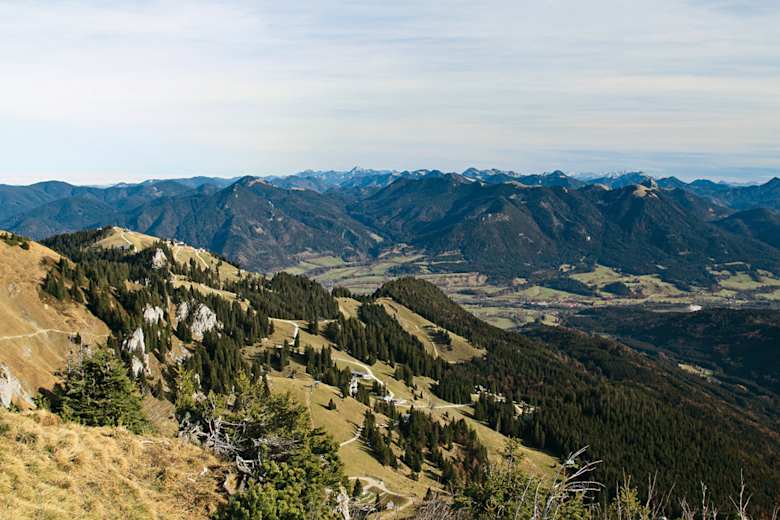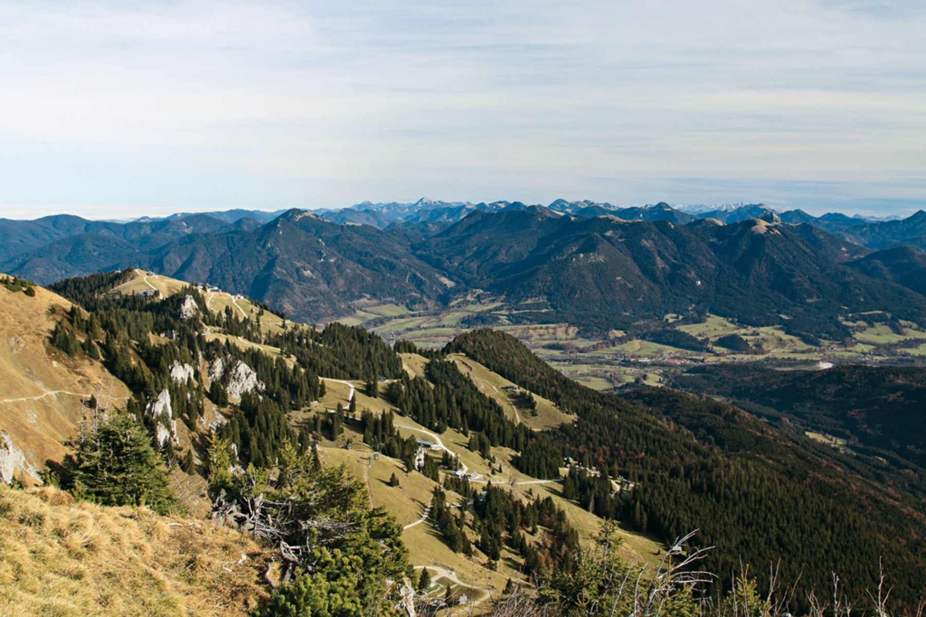 Blick über das Isartal in die Bayerischen Vorberge. Foto: Evamaria und Primus Wecker Am Brauneck-Gipfelhaus Foto: Evamaria und Primus Wecker Über diesen interessanten Kamm führt der Weg zum Latschenkopf. Foto: Evamaria und Primus Wecker Blick über die Hüttenterrasse zur Zugspitze. Foto: Evamaria und Primus Wecker Bildergalerie (4)