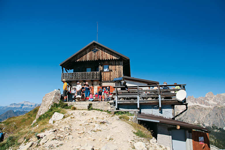 Das Rifugio Nuvolau (2.575 m) zählt zu den ältesten Dolomitenhütten. Es wurde auf Initiative von Oberst Richard von Meerheimb aus Dresden erbaut, der in Cortina d’Ampezzo eine schwere Lungenkrankheit auskurierte. Cortina gehörte damals noch zum Habsburgerreich und Bauherr war die Sektion Ampezzo des DuOeAV. Am 11. August 1883 war feierliche Eröffnung und aus Dankbarkeit für die großzügige finanzielle Unterstützung des Genesenen nannten die Ampezzaner ihr kleines Refugium „Sachsendankhütte“.