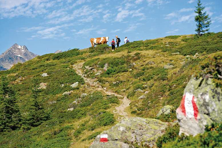 Der lange Weg ins Tal: Die letzte Tagesetappe der Alpenüberquerung führt von der Wangenitzseehütte (2.508 m) in der Kärntner Schobergruppe nach Lienz in Osttirol und hat es nochmals in sich. Es ist zwar nur ein kurzer Anstieg in die Obere Seescharte, die zudem mit einem sehr schönen Blick zurück belohnt, dann aber geht es auf dem Wiener Höhenweg wirklich lange über Wiesengelände mit tollem Blick Richtung Lienzer Dolomiten nach Süden hinab. Bei Iselsberg taucht man allmählich in die Zivilisation ein.