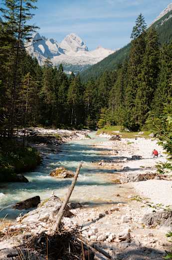 Zwischenstation an der Bockhütte: über der Partnach hinten das Zugspitzplatt. Foto: Christian Rauch