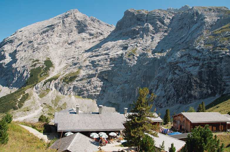 Zur Tourmitte: Übernachtung in den einst königlichen Schachenhäusern, oberhalb das Gipfelziel des zweiten Tags. Foto: Christian Rauch Bildergalerie (4)