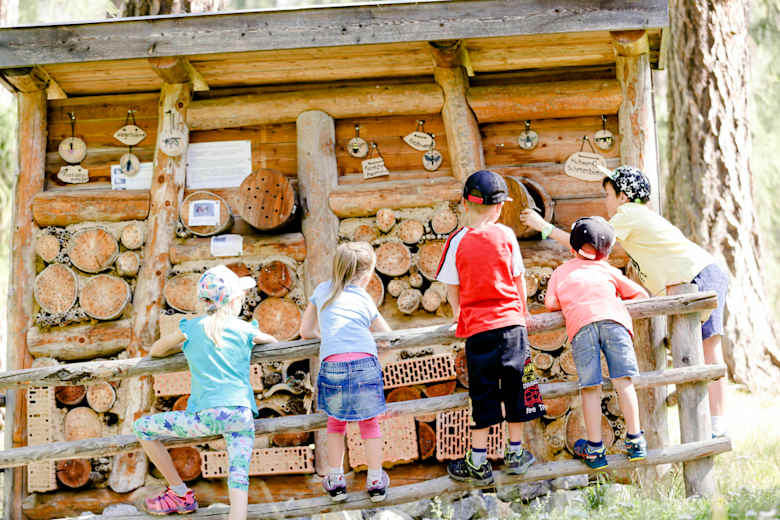 Auf dem etwa drei Kilometer langen Rundweg im Talaiwald in St. Valentin laden zwölf Stationen Jung und Alt zum Spielen und Entdecken ein.