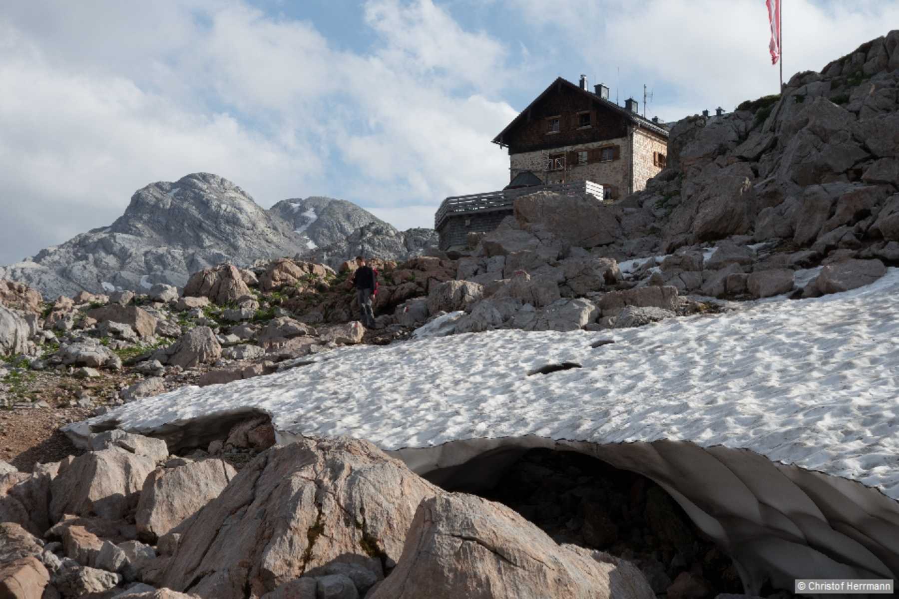 Kärlingerhaus – DAV-Sektion Berchtesgaden, Ende Mai bis Mitte Okt., 40 Betten, 178 Lager, AV-Mitglieder 11–14 €, Nichtmitglieder 22–28 €, +49/8652 6091010, Reservierung nur online.