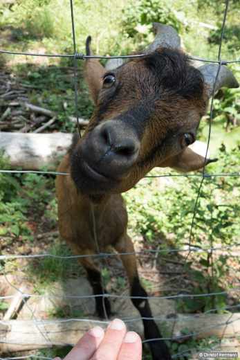 Neugierige Ziegen freuen sich über Streicheleinheiten. Foto: Christof Herrmann, Rother Bergverlag