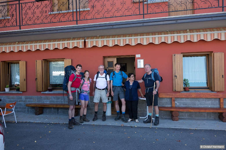Spaziergang voller Kleinodien zur sitzenden Madonna mit Kind: Entlegene Bergdörfer, denen man die Abwanderung der letzten Jahrzehnte ansieht. Laubwälder, die nur wir Fernwanderer zu betreten scheinen. Votivkirchen, die am Wegrand liegen oder in der Ferne auftauchen. Weitläufige Wiesen, auf denen früher Getreide angebaut wurde.