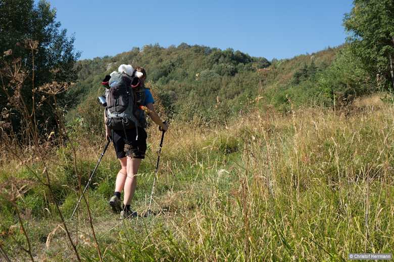 Leichte und kurze Etappe. Die Wege können an manchen Stellen etwas zugewachsen oder nach Regen rutschig und verschlammt sein, was zügiges Vorankommen behindert.