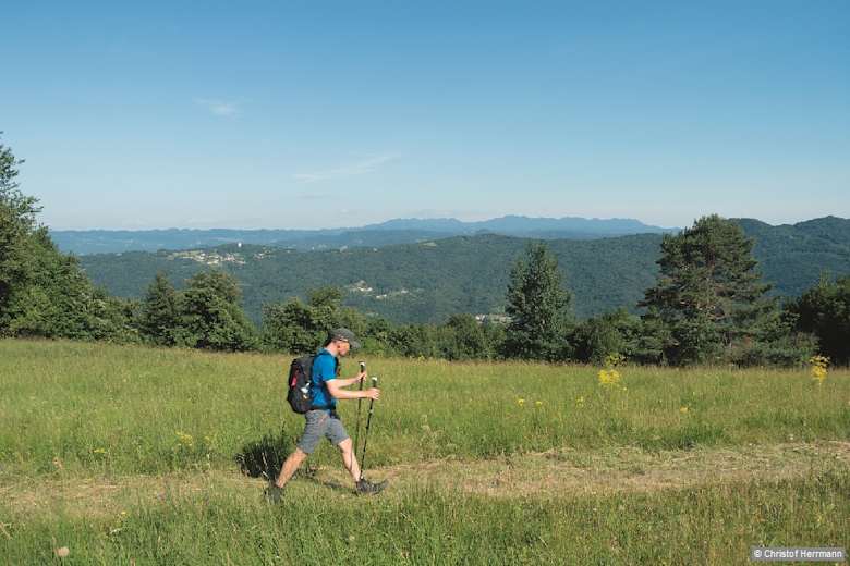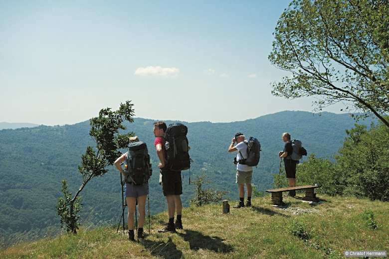 Immer wieder öffnen sich Ausblicke auf die bewaldete Hügellandschaft und entlegene Bergdörfer. Foto: Christof Herrmann, Rother Bergverlag Bildergalerie (8)