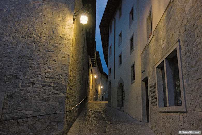 In Tribil Superiore, 642 m, kehren wir zunächst zum Ortsrand zurück. Dort zweigt unsere Route auf einem bereits markierten Forstweg halb rechts ab. Foto: Christof Herrmann, Rother Bergverlag