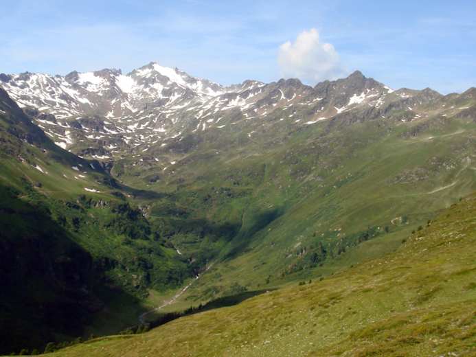 Über Almwiesen geht es nach Westen bis zu den Maroiseen. Nach einer steilen Kuppe inkl. Liftstation folgt man der Forststraße nach Westen zur Albongrat-Bergstation. Auf dem Grat entlang und schließlich abwärts zur Kaltenberghütte.