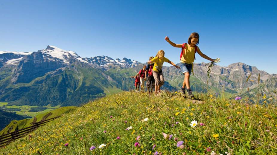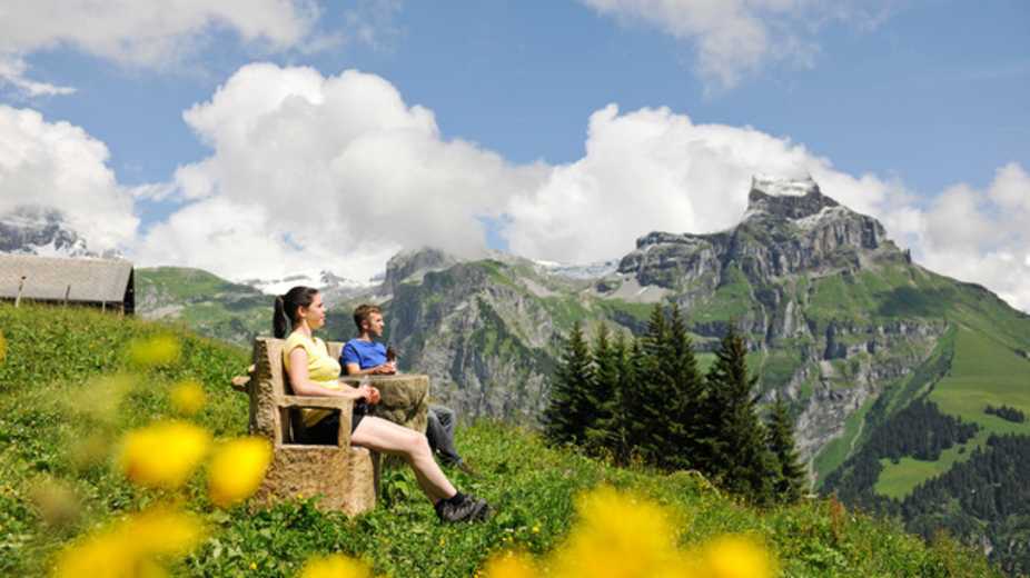 Anspruchsvolle Höhenwanderung in den Unterwaldner Voralpen in der Zentralschweiz. Der Walenpfad in den Schweizer Kantonen Nidwalden und Obwalden führt von der Bannalp (1.713 m) im stetigen Auf und Ab nach Ristis (1.600 m).