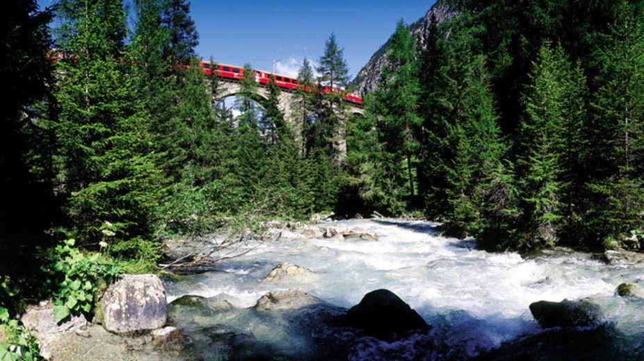 Seit 2008 steht die Albulalinie unter UNESCO-Schutz. Ihre spektakuläre Streckenführung ist einzigartig. 39 Tunnels, 55 Brücken, 1.123 m Höhendifferenz werden dabei überwunden.