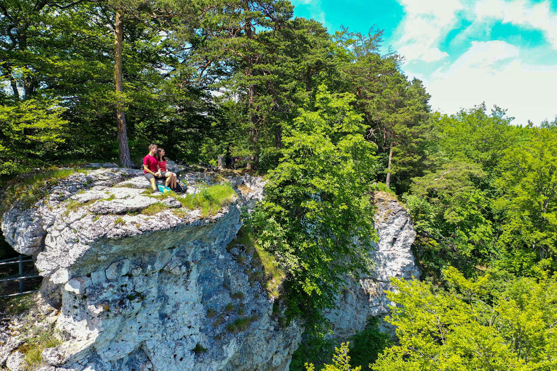 Auf der 13. Albsteig-Etappe kommt man zu einem ganz besonderen Höhepunkt der Schwäbischen Alb: Zum Hangenden Stein und zum Zeller Horn, von dem man den bekanntesten Blick auf Burg Hohenzollern genießen kann.