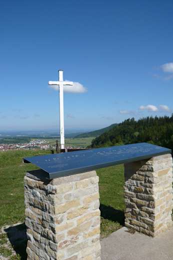 Am Aussichtspunkt Kehlen befinden sich ein Kreuz und eine Übersichtstafel. Foto: Jana Bohlmann, Schwäbische Alb Tourismusverband e.V. Bildergalerie (3)