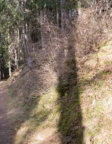 Die Wanderung beginnt am Parkplatz P 2 Viéira, direkt am Übergang der Gallerie der „Strada del Gallo". Hier steigt man in den Wanderweg Nr. 176 ein, der am Beginn über Wiesen führt und leicht ansteigend über Lärchenwiesen und anschließend durch Latschenkiefernfelder führt.