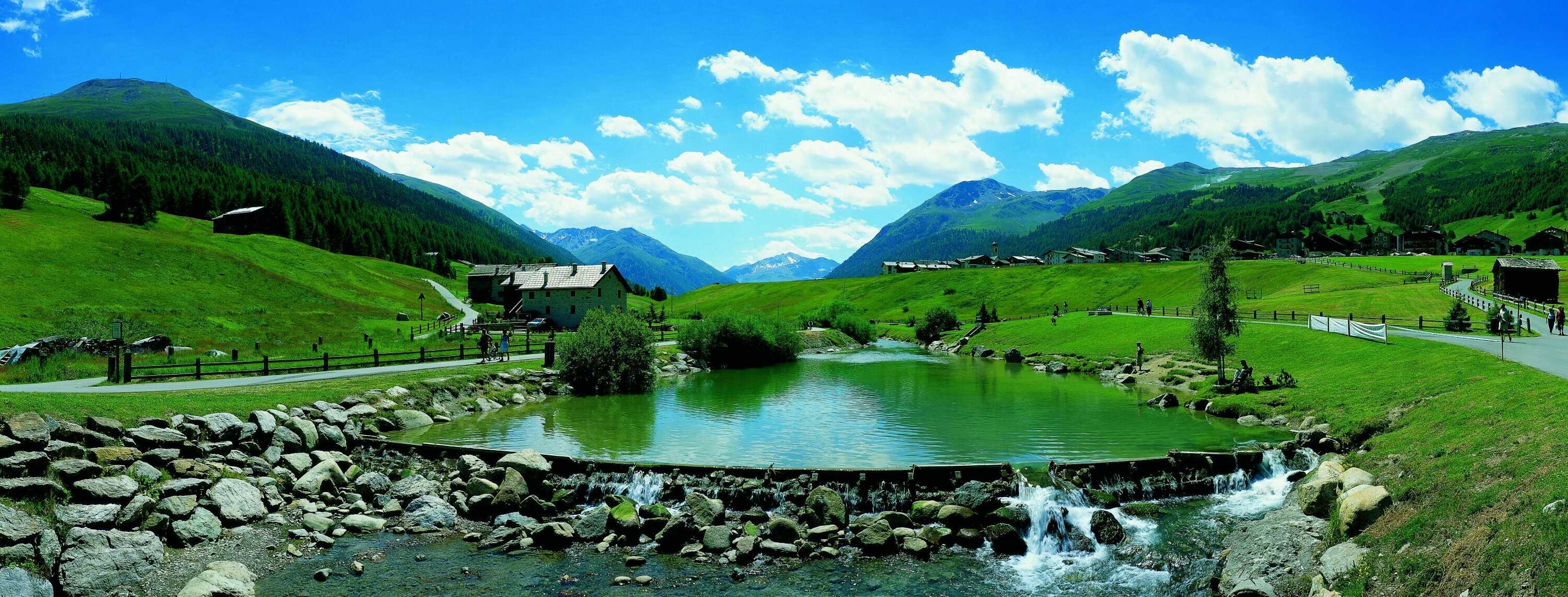 Nun steigt man über die „Corta", einem alten Maultierpfad in Richtung Bormio, ab. Am Wegesrand stehen die Stationen des Kreuzweges durch die schönen Lärchenbestände, kann man den Endpunkt der Wanderung, dem Pont da Bondi, am Talboden von Livigno sehen.