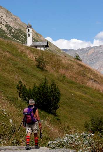 Vom Milchhof von Livigno, der Latteria, zum Pònt da li Càra und zum Passo Val Alpisella in den Livigno Alpen. Hier entspringt die Adda, der Fluss der auf seinem Verlauf durch die Lombardei durch den Como See fließt und in den Po mündet.